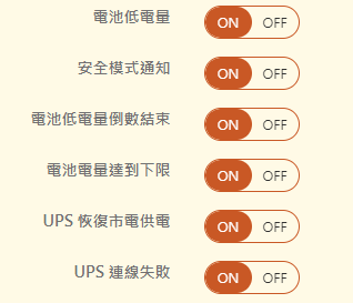 關於 UPS 的訊息通知項目,管理者可以根據需求開啟通知功能。