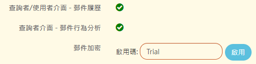 【查詢/使用者/郵件加密介面,登入猜密碼攻擊防禦】:啟用後,當使用同一帳號和同一來源 IP 登入超過 10 次錯誤,介面會出現阻擋提示,但不會封鎖 IP