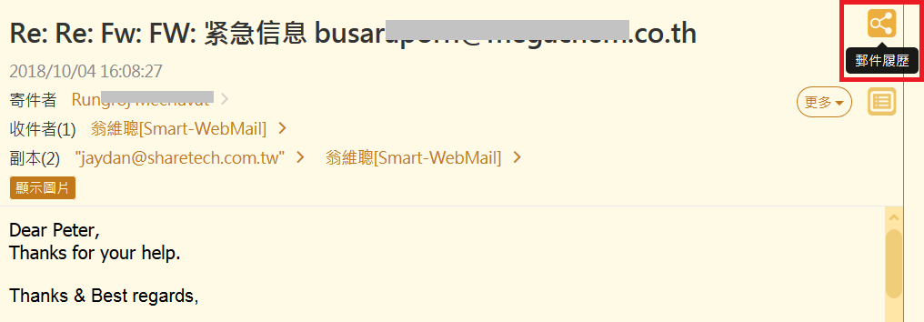 會出現此帳號的處理郵件時間情況,預設顯示精簡模式。