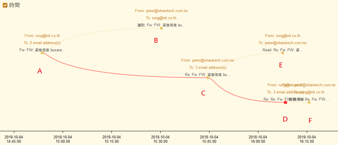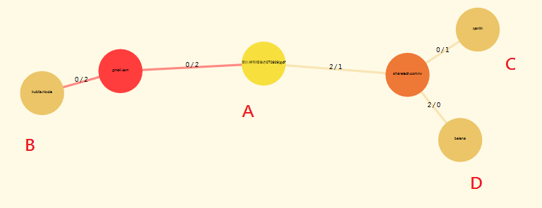 在搜尋結果的星狀圖中還可以看出這一個檔案是由誰寄給誰,有哪些人收過此檔案。