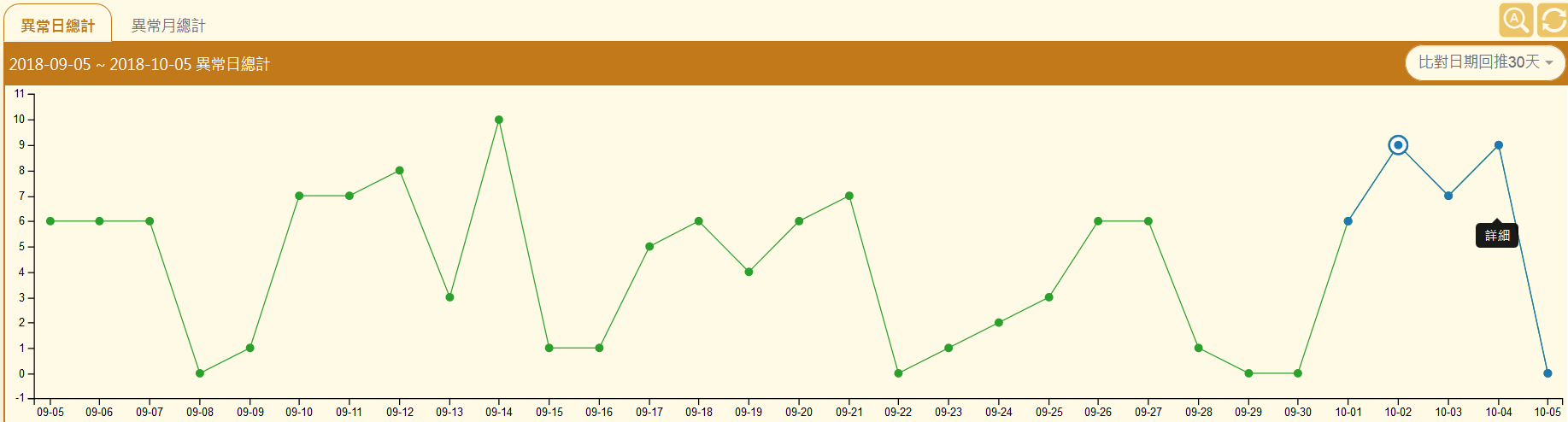 依據查詢者可查詢的權限統計帳號的寄信數,可做出過去一段時間跟今日寄信數量的比較。