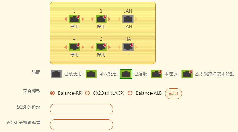 【聚合類型】:使用哪一種聚合模式,把 2 個網路卡的頻寬綁定,增加速度。