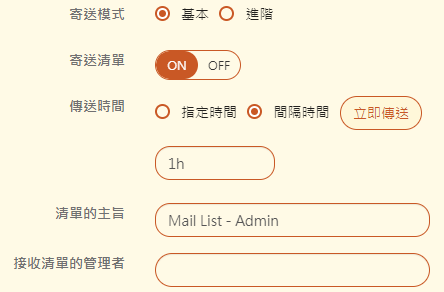 【清單的主旨】:寄送清單給管理者的郵件主旨。