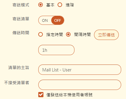 【清單的主旨】:寄送清單給使用者的郵件主旨。