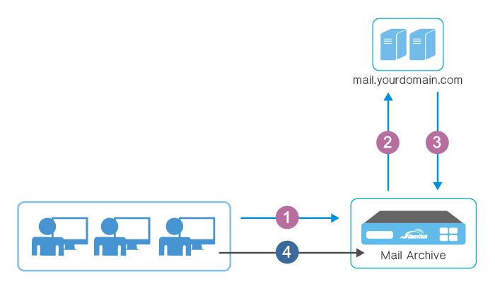 當使用者更換電腦或是將郵件伺服器換新,導致使用者的郵件遺失,此時只要有 ShareTech 的郵件歸檔伺服器就可以將郵件還原至原本的郵件伺服器帳號中。