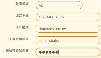 以上圖為例,遠端主機是 192.168.191.176,AD 的網域名稱是 sharetech.com.tw,並以 administrator 為登入查詢帳號。