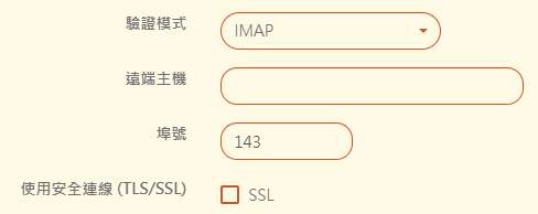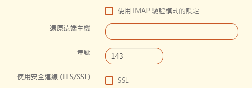 【使用 IMAP 驗證模式的設定】:若一般設定的【驗證模式】選擇為 IMAP 則勾選此項,表示不需重複填寫。