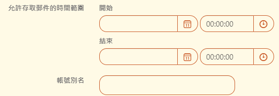 【允許存取郵件的時間範圍】:影響查詢者和使用者能查看郵件的時間範圍。若不輸入表示為不限制。