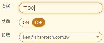 【部門帳號】:輸入跟原本郵件伺服器相同的部門帳號或是虛擬帳號,例如:eng@sharetech.com.tw 代表是工程部的部門帳號。