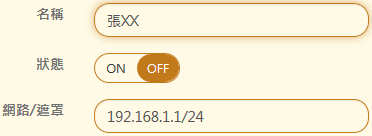 【網路/遮罩】:輸入 IP 位址及範圍。
