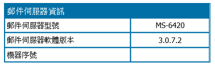 【機器序號】: 代表此郵件伺服器的唯一序號。