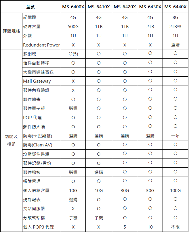 本手冊以 郵件伺服器X 為範本,請仔細檢查購買的設備是否有相對應的功能。