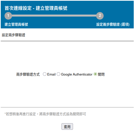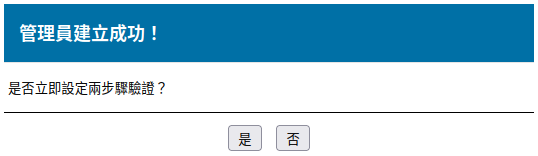 接著系統會詢問是否設定兩步驟驗證。如果不需要兩步驟驗證,可以點選「否」,系統會跳出登入畫面。