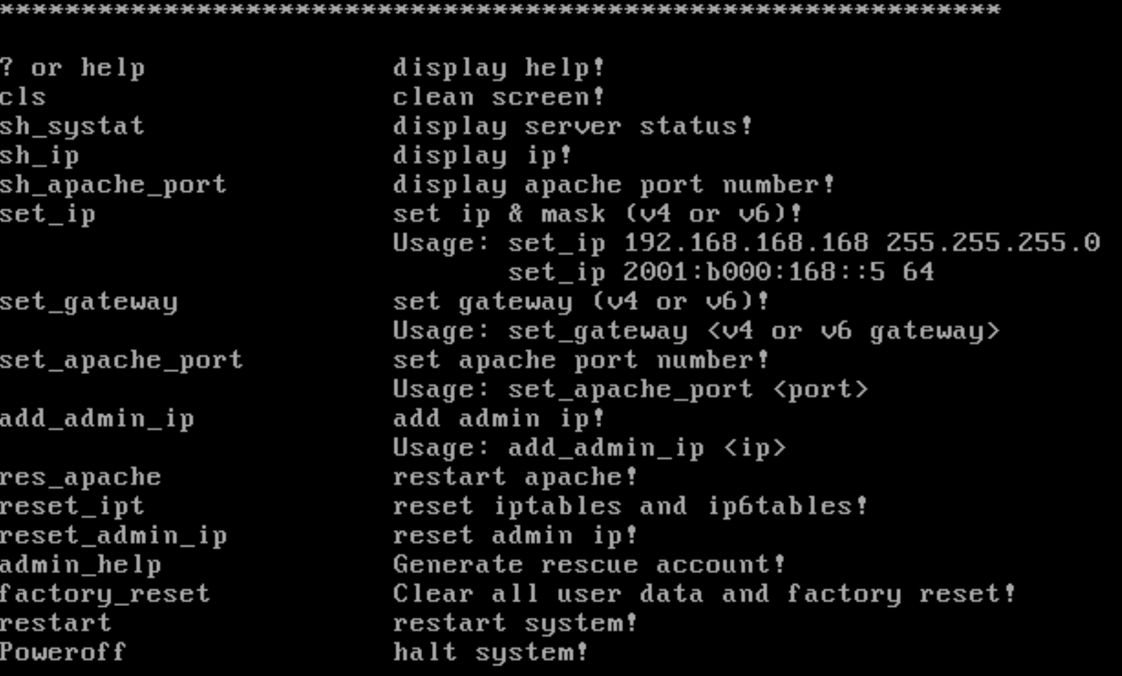 Console提供了一個基於文字的介面,讓使用者可以與設備直接互動,進行一些基礎操作。 常見的用途有:還原出廠預設值、設定 IP 位址、重置管理 IP 等。
