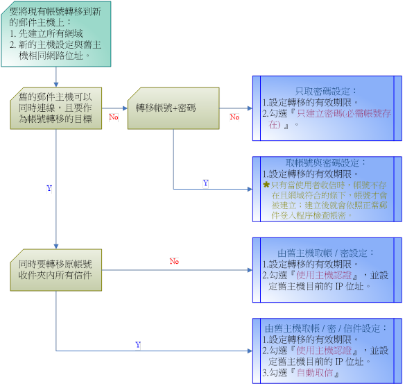 使用 IMAP 協定轉移郵件時,如果來源信箱名稱中有「.」(dot),因系統限制因素,在建立目標信箱時會將名稱中的「.」(dot) 用底線「_」取代。 例如:當來源信箱名稱是 A1.0 時,在目標信箱會建立 A1_0,不會變動來源信箱名稱。