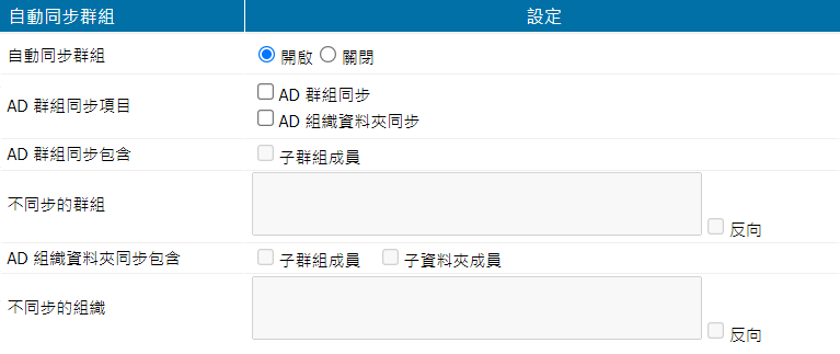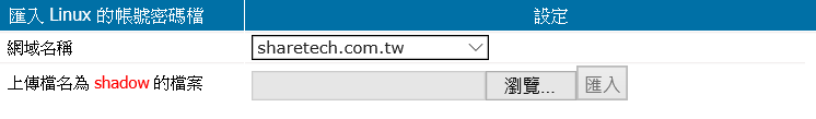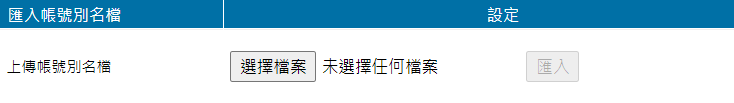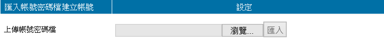 【匯入群組】: 管理者可以定期將群組帳號資料做備份動作,當系統更新或是重建後,可直接匯入檔案,快速將原來的群組帳號建立。