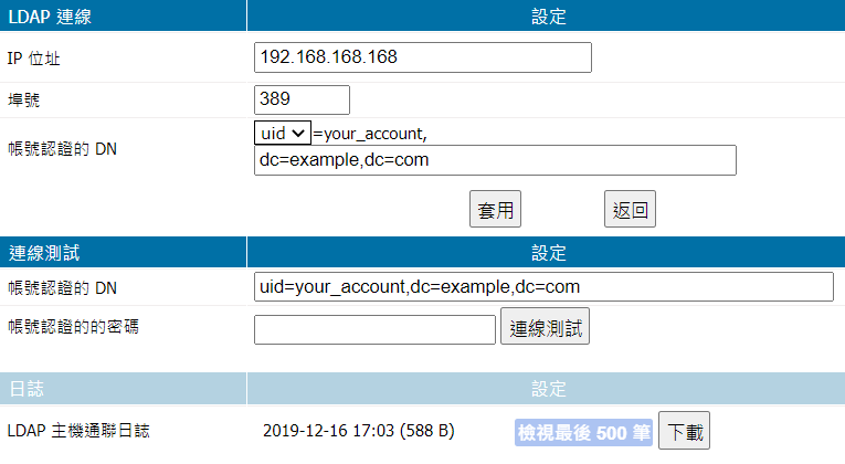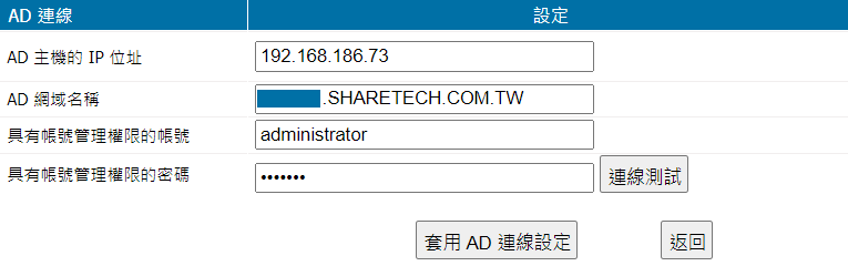 選擇 AD 帳號整合或 LDAP 帳號整合,須先選擇並套用後,再進入