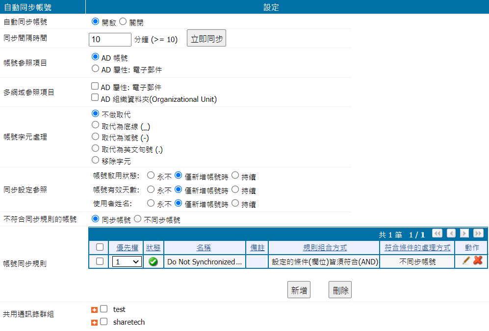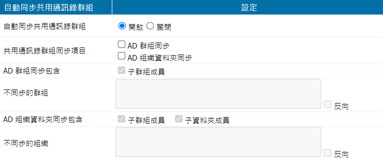 【聯動編輯共同聯絡人—姓氏】: 編輯「使用者管理 > 帳號管理」時,是否使用「使用者姓名」聯動編輯「聯絡人 - 共用通訊錄群組」的姓氏。