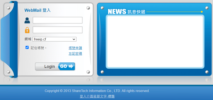 W 【登入介面顯示公布欄】: Webmail 登入介面是否顯示公布欄資訊。