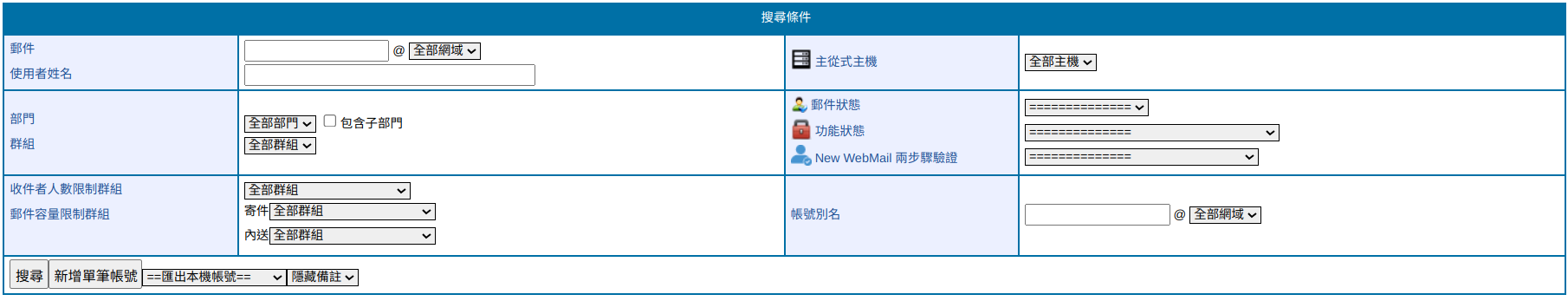 【匯出群組】: 匯出已建立在郵件伺服器的群組帳號,包含群組帳號與設定。