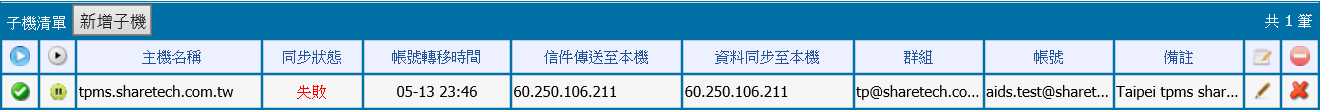 本機帳號與對應的外部帳號須為 同名帳號,例如從 A@gmail.com 轉移至 A@sharetech.com.tw。自訂轉移
