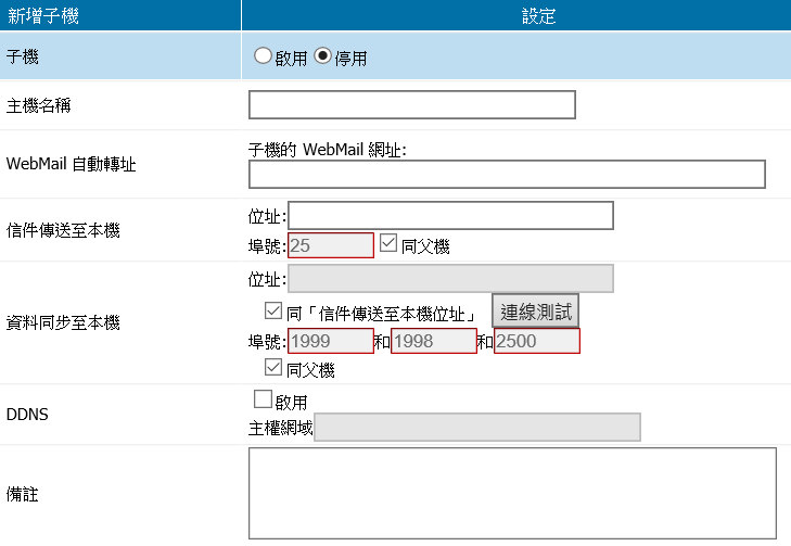 〖被轉移的伺服器網域〗: 輸入被轉移的郵件伺服器網域名稱。