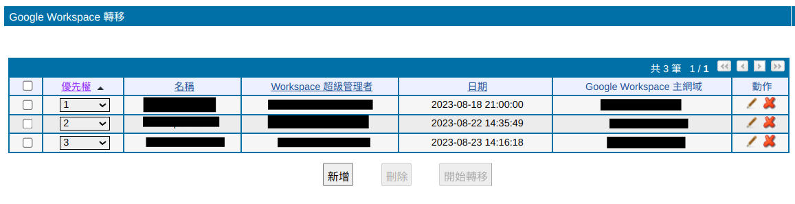 【Google Workspace 主網域】: 轉移Google Workspace的目標網域。