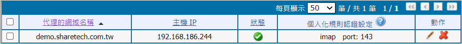 【狀態】: 修改、刪除已經建立的代理網域跟 IP 位址對應。