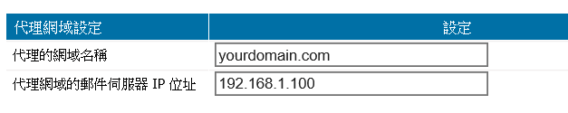 【代理網域的郵件伺服器 IP 位址】: 要代理網域的郵件伺服器 IP 位址。