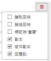 【更多】包含其他對於此信件的操作。其中【讀取回條】、【副本】、【密件副本】可在 5-1、一般設定 調整為預設啟用