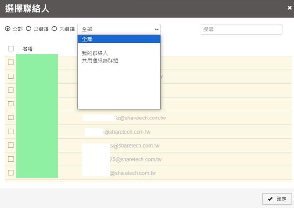 通訊錄裡沒有選擇加入寄件者的帳號。選擇完帳號後,按【確定】即成功將此帳號加入收件人。