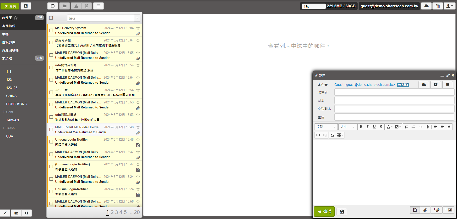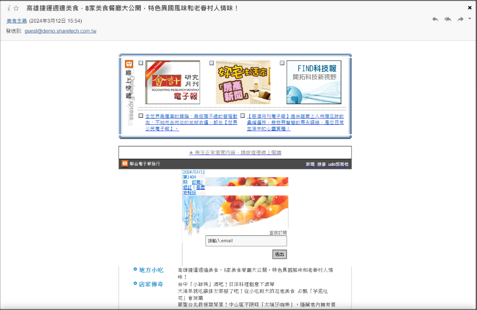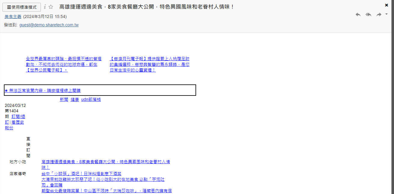 安全模式下,寄信後會移除信件中的圖片、超連結內容以及部分HTML樣式。
