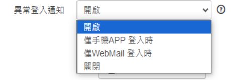 可以選擇異常登入是在【手機APP】或是【網頁版】時傳送通知。