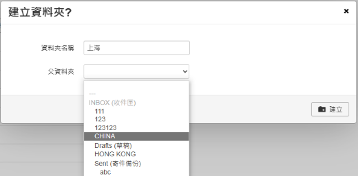 例如:新增上海資料夾,選擇China,上海就會歸類在China底下,成為它的子資料夾。