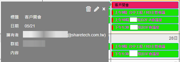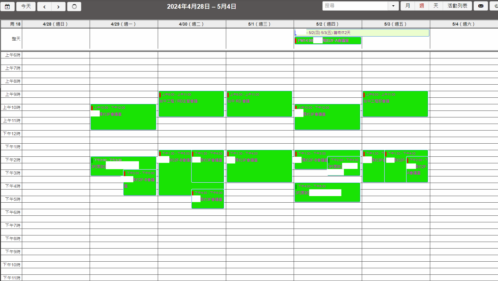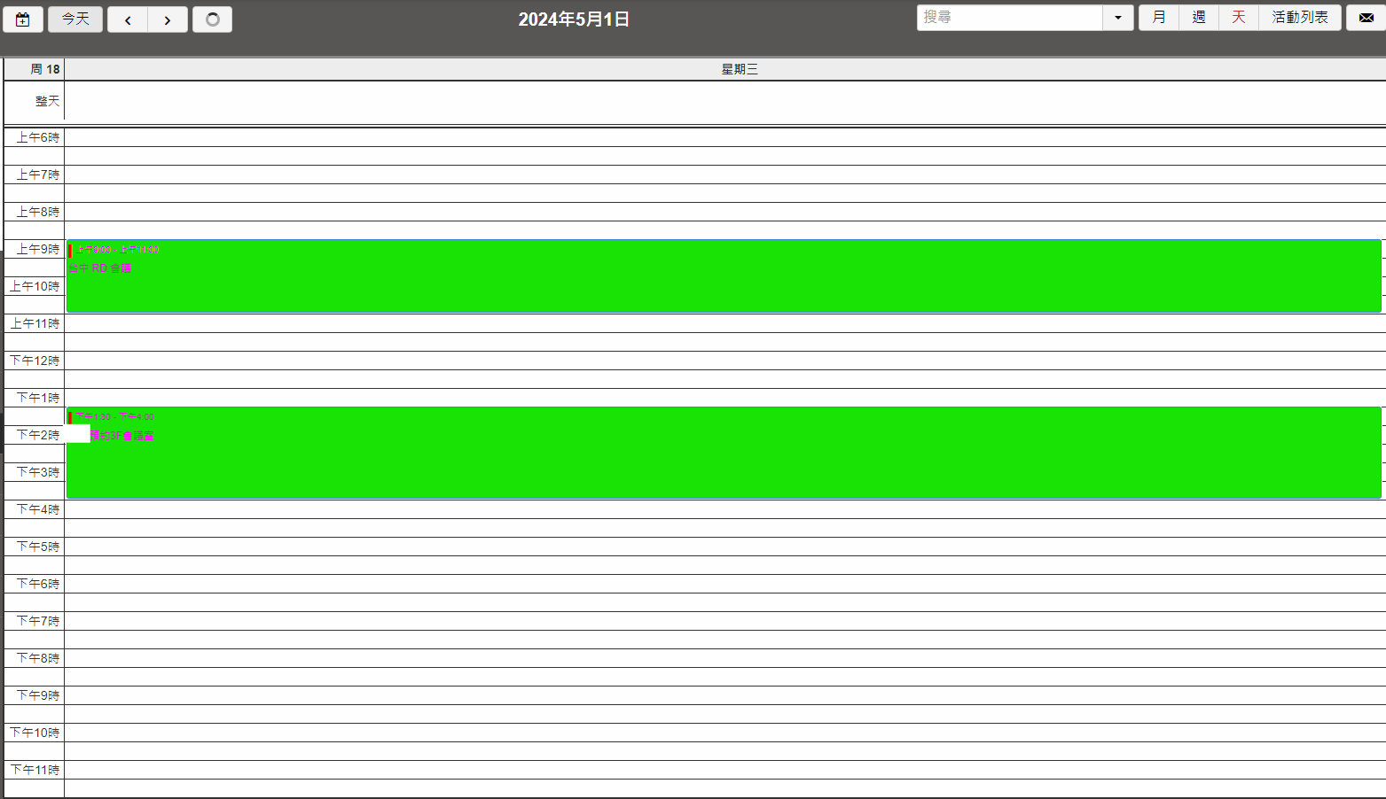 按一下,輸入標題、地點、時間、內容等等。已經設定好的活動如果要改時間,可直接把活動的色塊用滑鼠拖拉到新的時間就可以了。