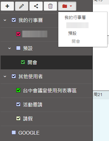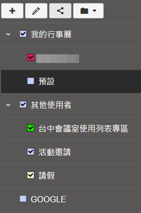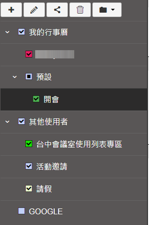 打勾:顯示此行事曆,以及子行事曆(不管是否勾選)