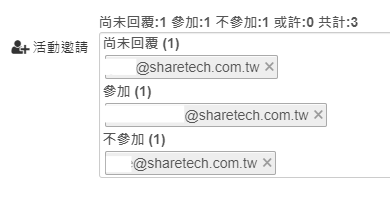 邀請者也可在行事曆中看到每個受邀者的回覆狀況,並且分類統計。