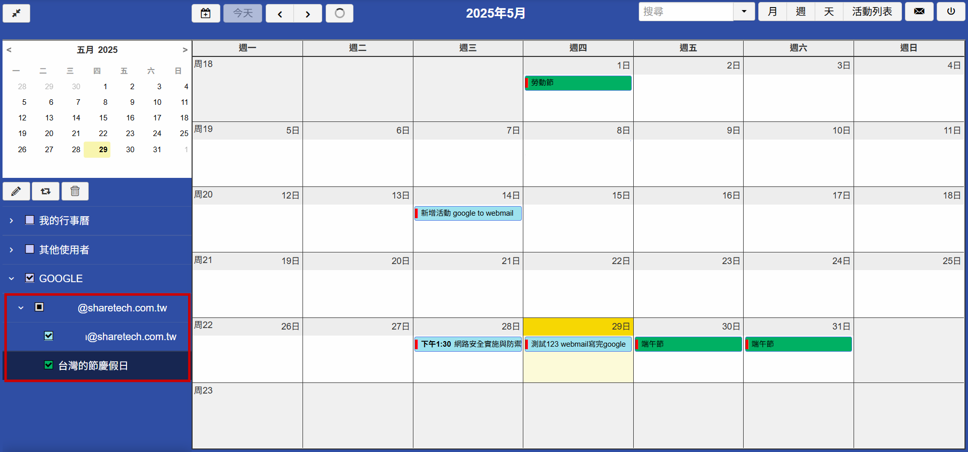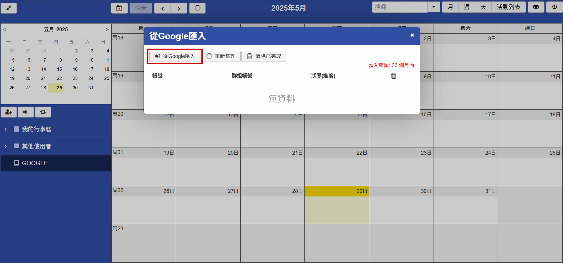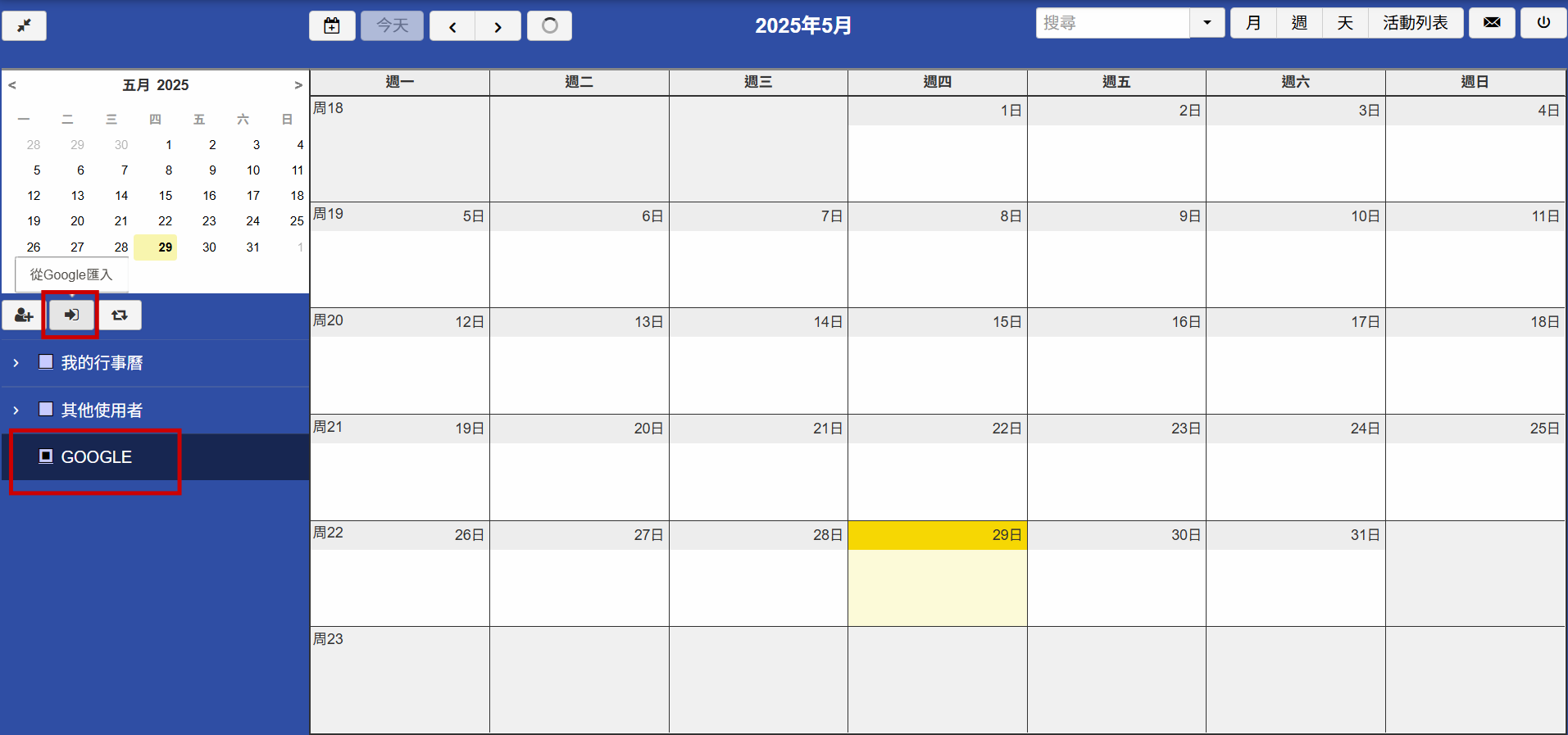 眾至也支援僅單向從google匯入Webmail,不同步google日曆的方式。