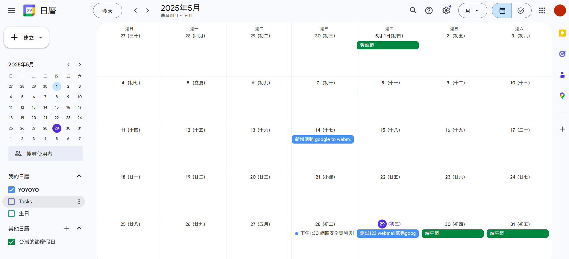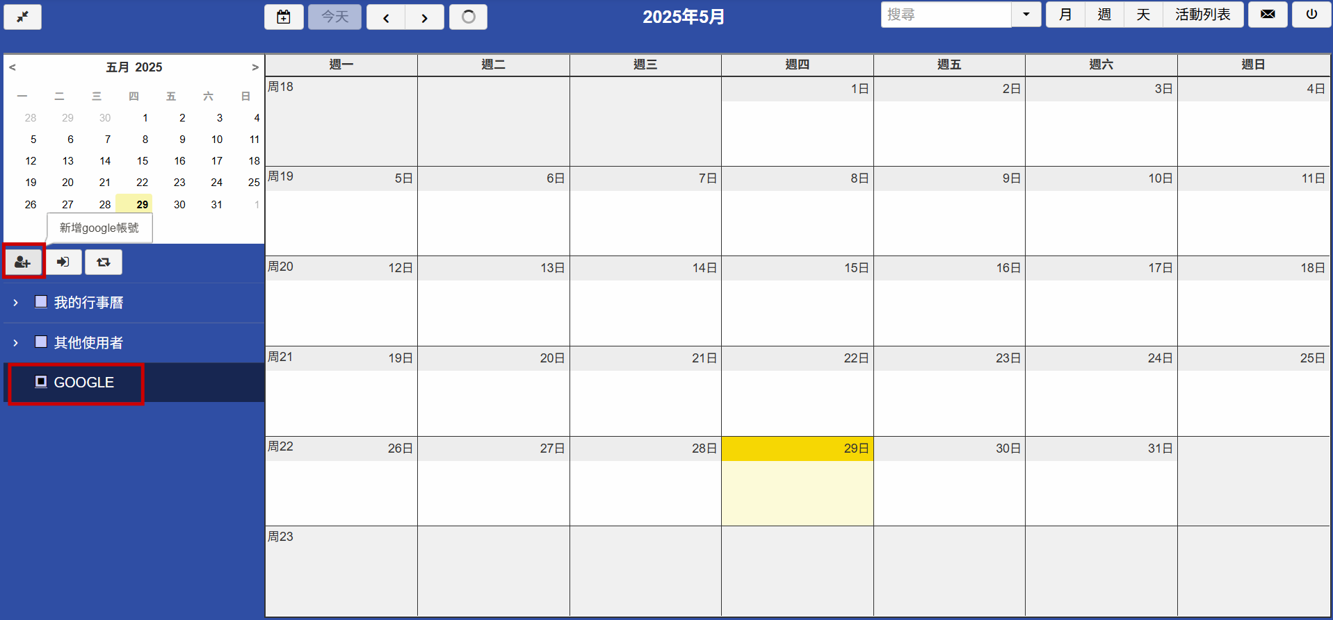 ,需考量您原先的Google的日曆量,同步會需要一點時間,請耐心等候。