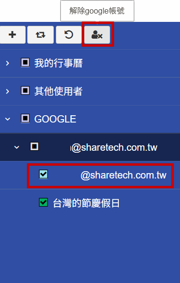 若想刪除匯入的Google日曆,請參考下列步驟。