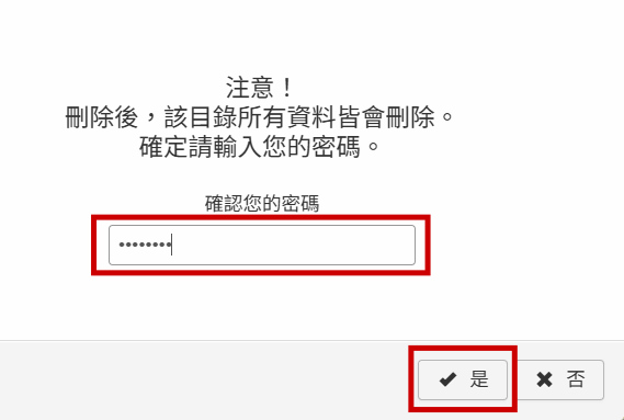 ,系統會要求輸入信箱密碼才能刪除該行事曆。移動行事曆