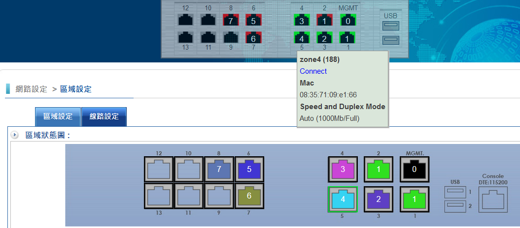 此處顯示的 port 號碼跟實際機器上的 port 號碼是一致的,但實際位置可能會不一樣,所以管理者在配置網路區域時,必須以 port 號碼為根據。