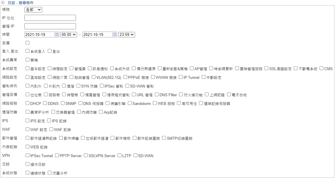 【帳號】:系統會列出所有管理者帳號,可選擇全部或特定帳號。