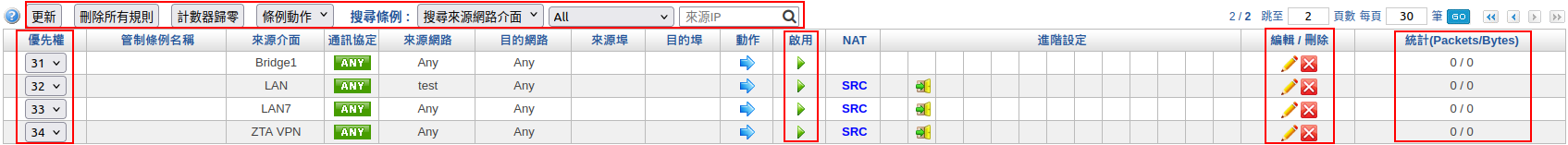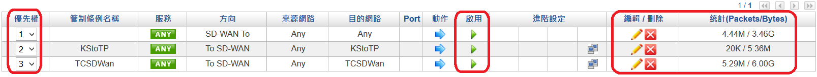 【啟用】:管制規則的暫停跟啟用按鈕,點選此處圖示後可以將原本啟用的管制規則暫停,原本暫停的改為啟用。