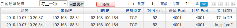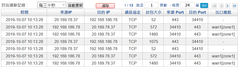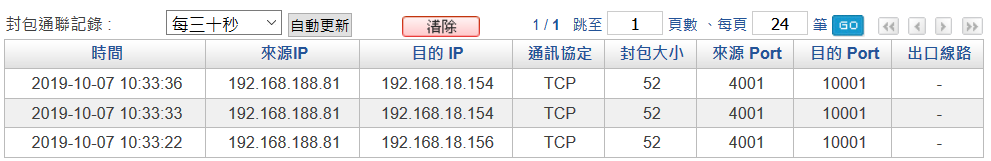 【自動更新】:NG-UTM 每隔 3~30 秒,就會自動更新封包的通聯記錄,方便管理者觀察。