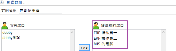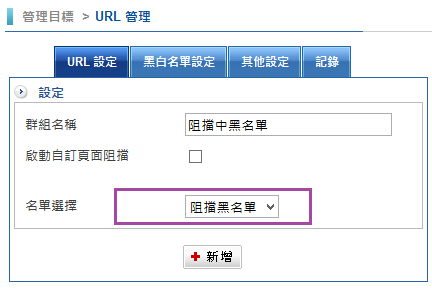 · 選項模式 :系統會自動加入在「管理目標 > 位址表」中已建立的位址表或是群組,讓管理者選擇。