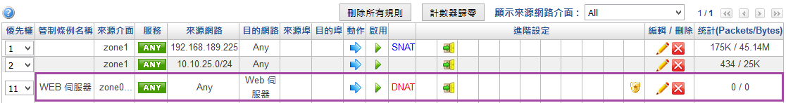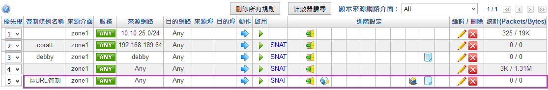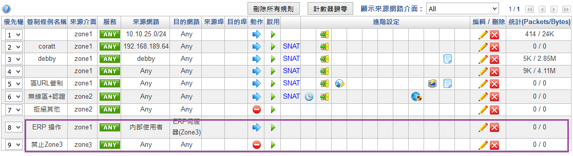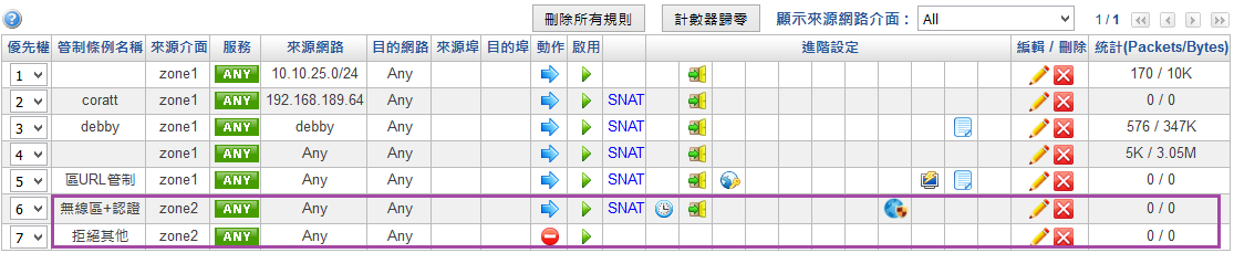 【刪除所有規則】:把所有的管制規則刪除,回到 NG-UTM 初始的狀態。