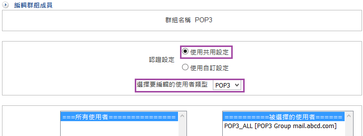 圖 129. POP3 伺服器帳號當作認證來源帳號#