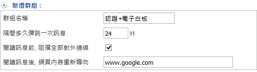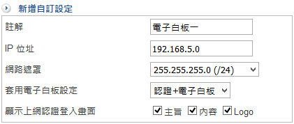 在「管理目標 > 上網認證 > 頁面設定」,管理者可以決定使用者登入畫面看到的資訊。