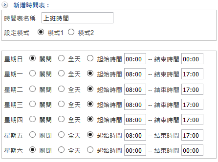 完成此管制規則,共需要 2 條管制規則完成這一份工作;一個是上班時間,另一個是非上班時間,須注意優先權順序。